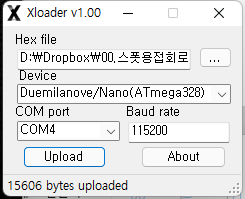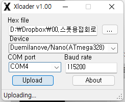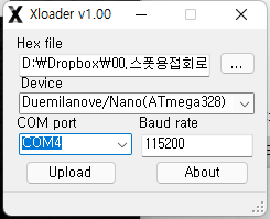 아두이노 나노를 회로에서 분리한 다음 USB케이블로 PC와 연결, 위에 첨부한 xLoader 프로그램을 이용하여 업그레이드 하시면 됩니다.