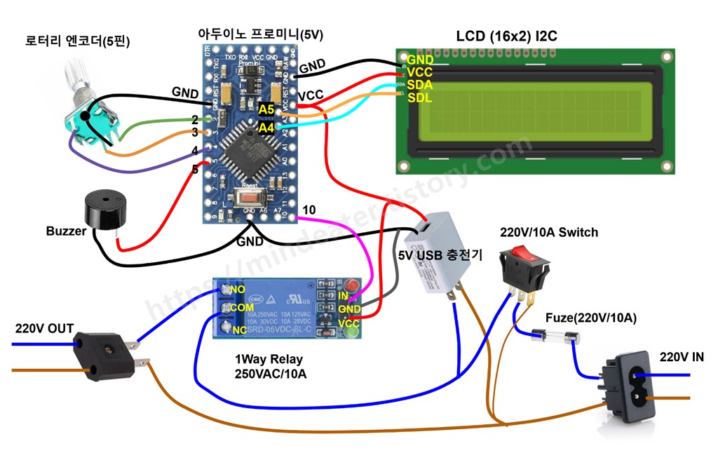아두이노 220V 10A 릴레이를 이용한 전자식 타이머 제작기와 배선도 추가 Ver 1.0