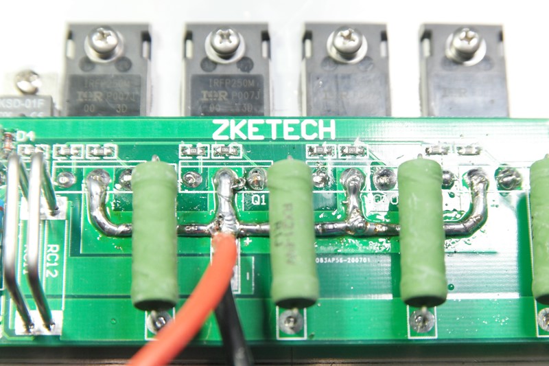 구리선으로 해주면 더 좋겠지만, 적당한 게 없고 모스펫 IRFP250N이 정품이 아닐테니 리드프레임 성분도 구리가 아닐 가능성이 높아 납으로도 충분해 보인다.