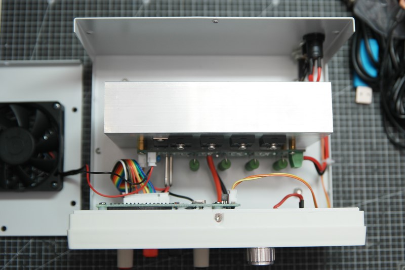 모스펫 4개가 커다란 방열판에 붙어있고, 전면부에 컨트롤 기판이 달려있다. 케이블은 깔끔하게 정리되어 공기의 흐름에 방해가 되지는 않을 듯 싶다.
