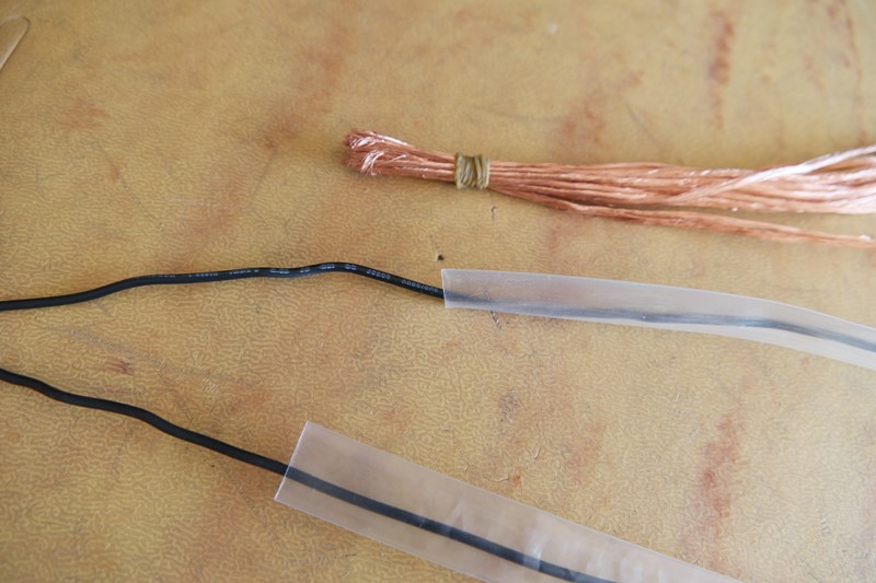 고물상에서 들고온 220V 단선이 좋은데 먼저 수축튜브에 먼저 넣고 한쪽에 2차 권선을 묶는다.