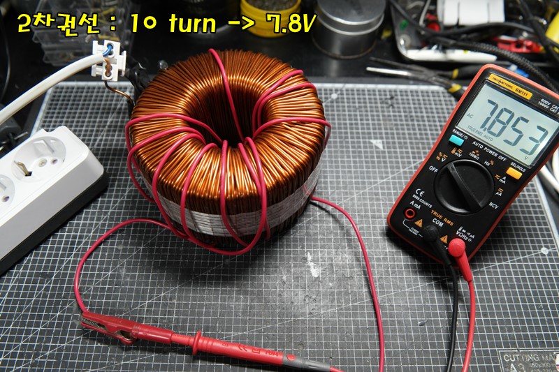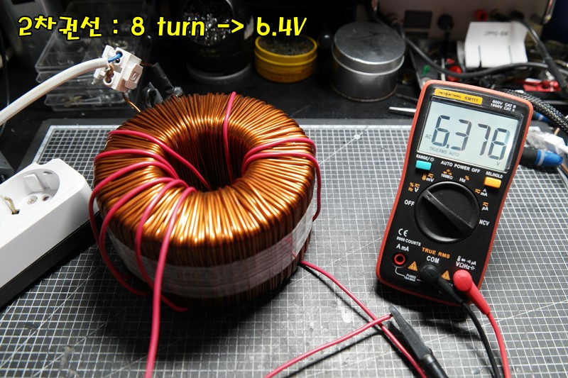 일단 2차권선의 두께가 충분하고 전력손실이 없을 예정(??)이기에 낮은 전압인 6.37V 8바퀴를 결정했다.