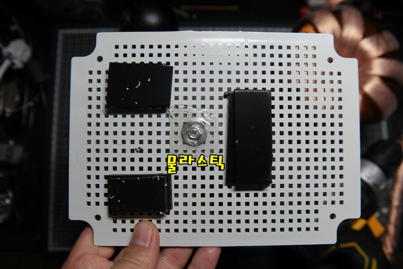 회로 쇼트를 방지하기 위해 아래에 플라스틱 조각을 덧붙여 보호했다.