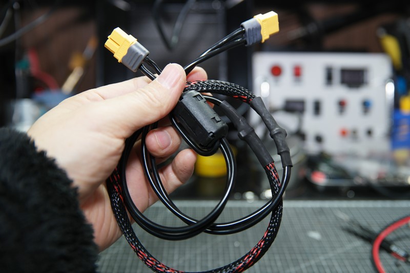 전원 릴레이를 자작한 XT60 암 -- 암 단자로 구성된 케이블이다.