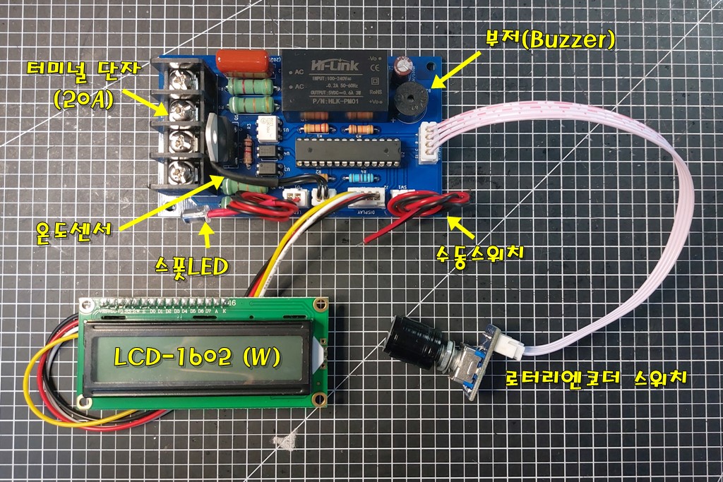 백색 배경의 LCD1602를 사용 (단가와 수급문제로 향후 노란색으로 변경될 수 있음)