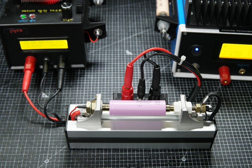 보통 방전기를 구입하게 되면 정확한 용량 측정을 위해 방전전류와 방전시 전압을 측정하는 센싱 핀이 분리된 전용 홀더를 사용해야합니다.