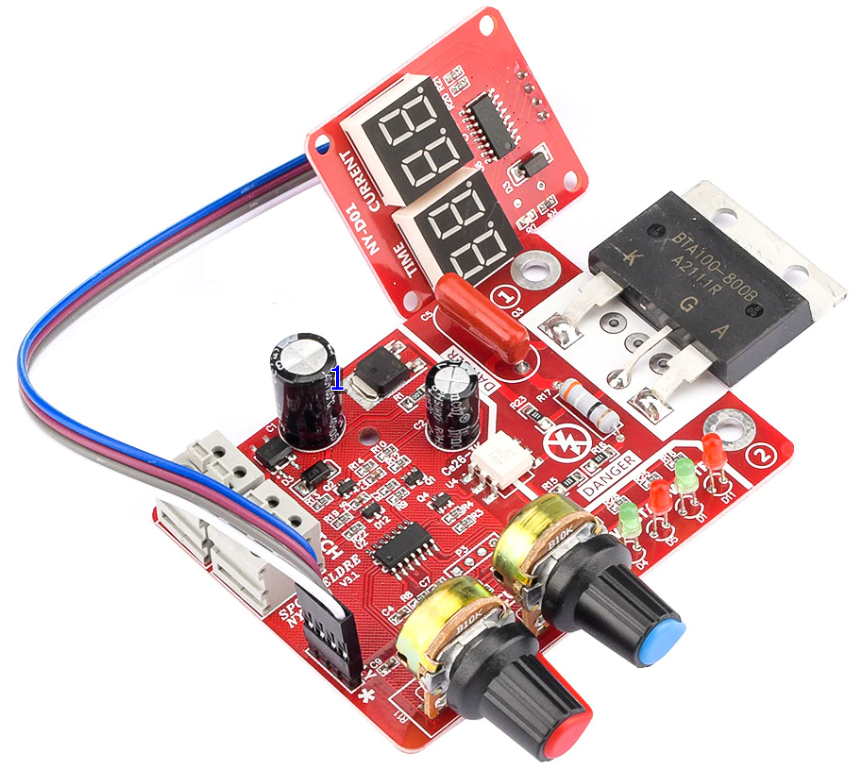 The control panel of the spot welding machine is a controller which is independently developed for the DIY or the simple resistance welding. The principle of silicon controlled phase shifting triggering is adopted to adjust the time and the current to achieve the purpose of welding.