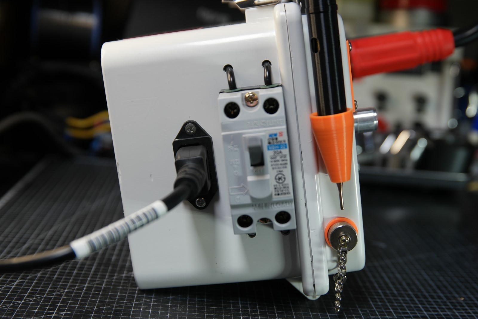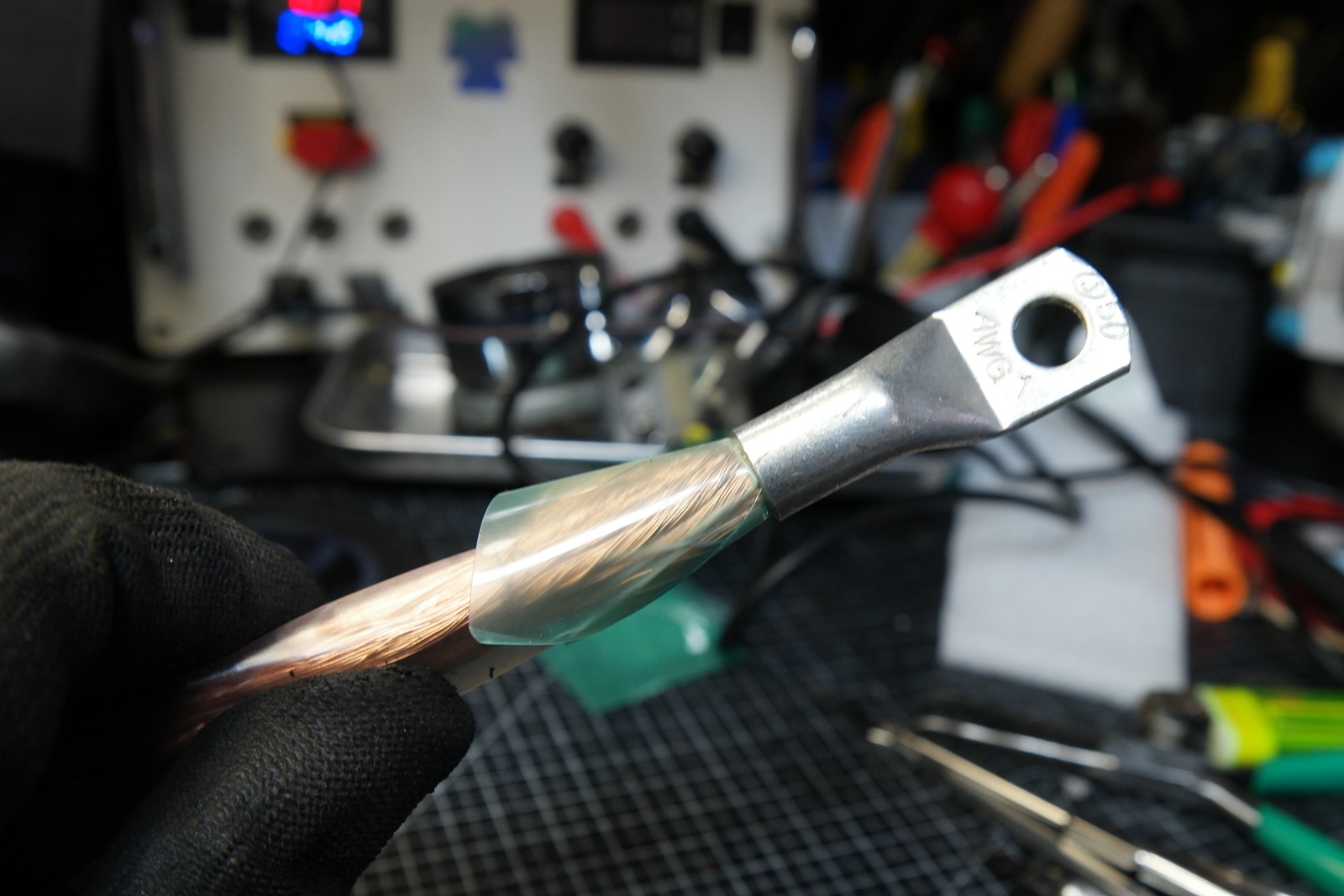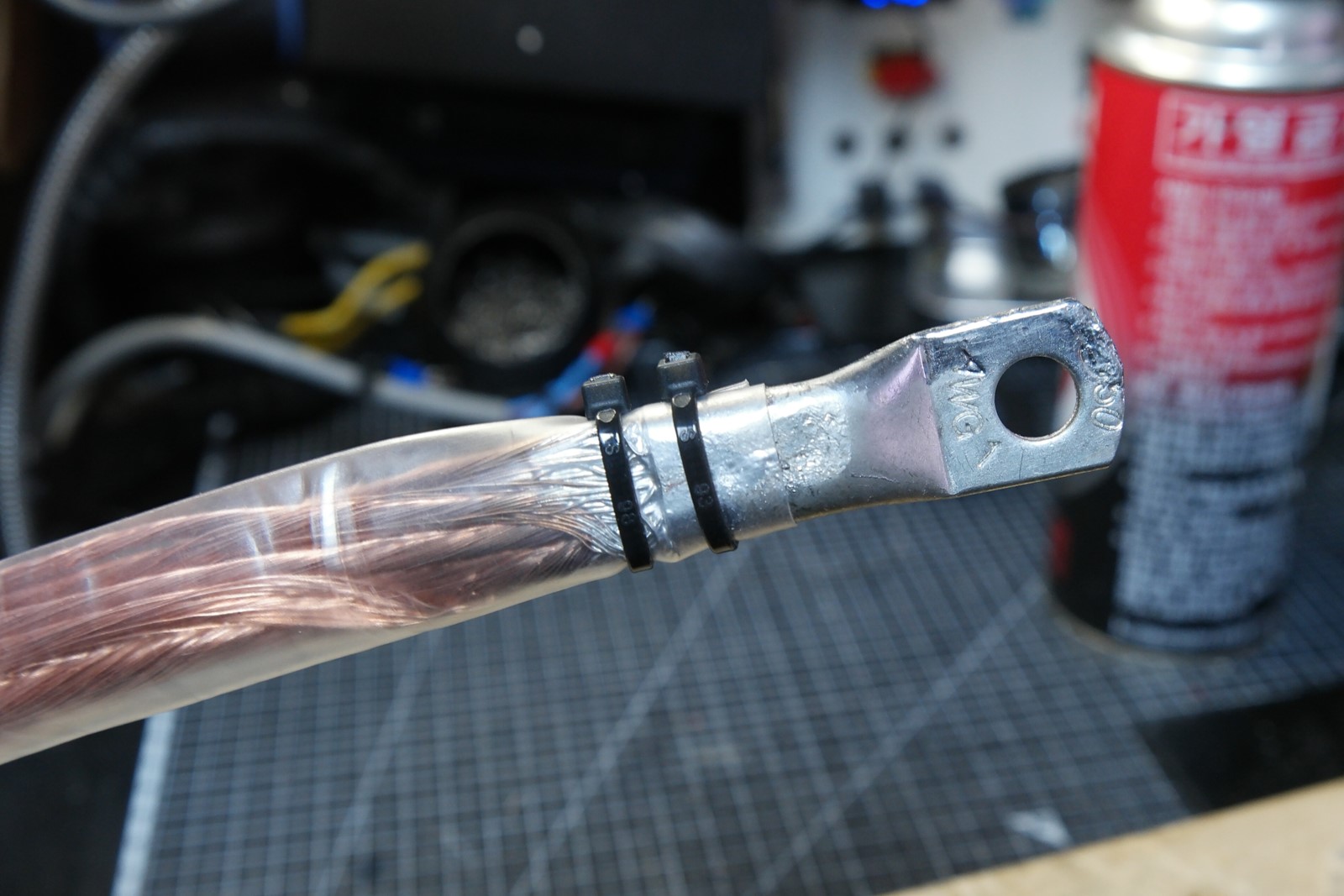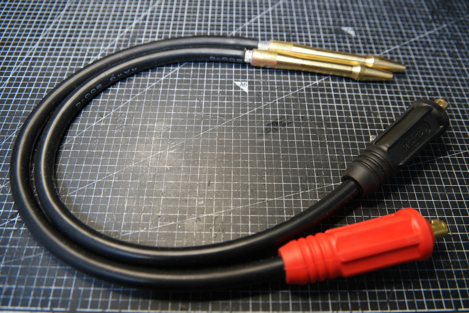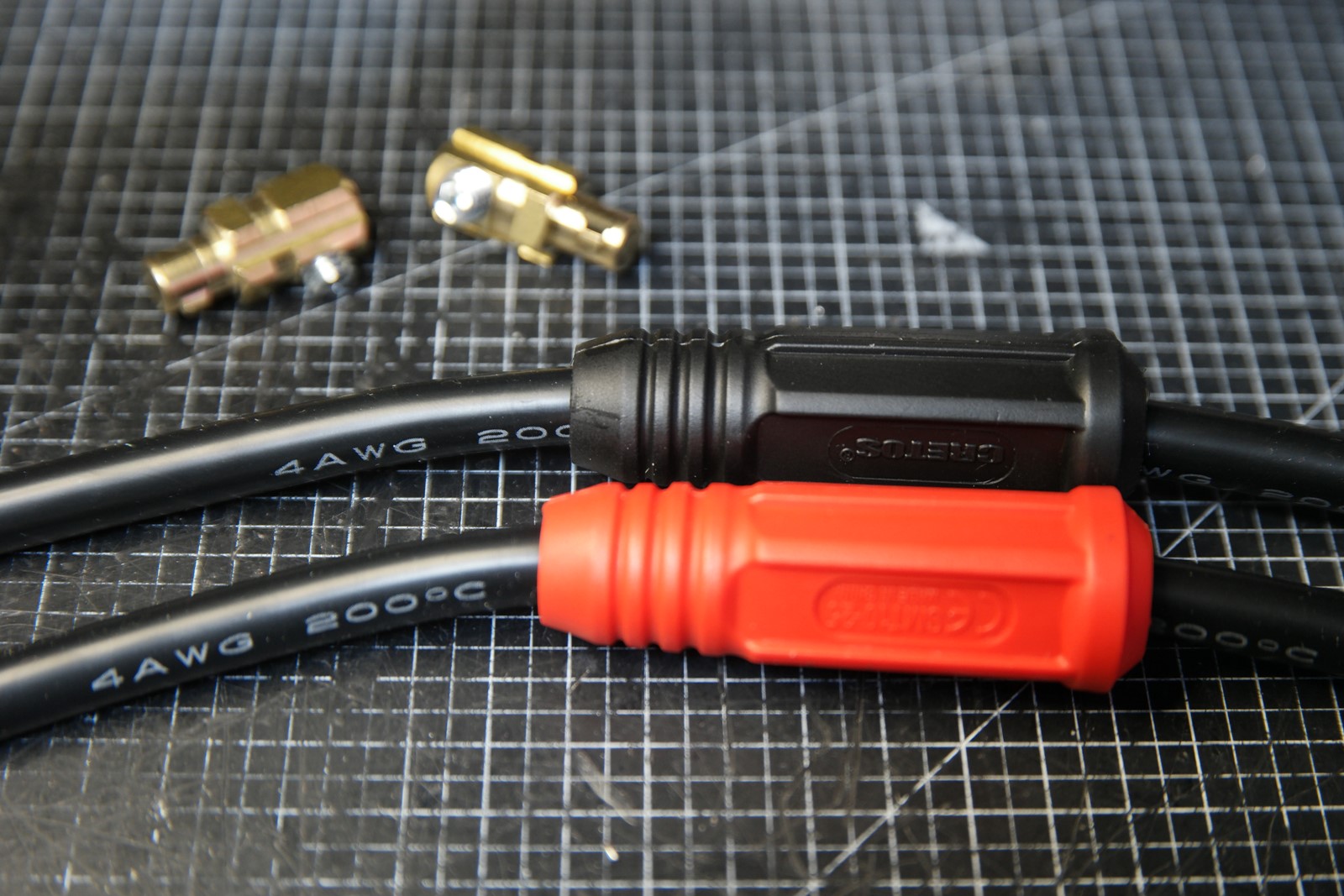 크레토스 정품 용접 커넥터 10-25 + 4awg 실리콘 케이블 + 홍공주 아빠가 제작한 용접동봉 (2~4awg) + 3D 출력품의 조합입니다.