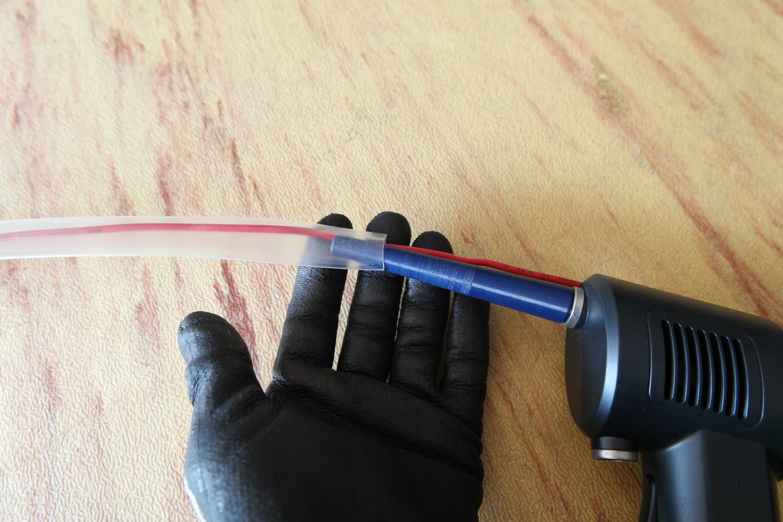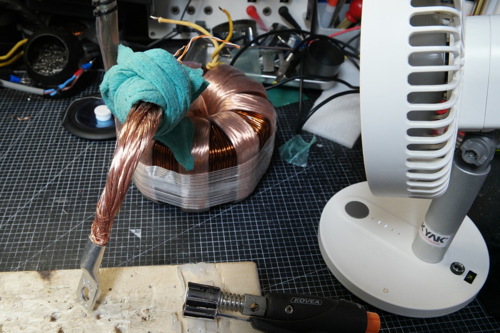 팁!! 권선을 다 감은 후에 수축튜브를 뒤로 밀어서 행주에 물을 묻여 감아주고 선풍기로 방열을 해주면 링터미널 열작업시 수축튜브가 축소되는 것을 막을 수 있습니다.