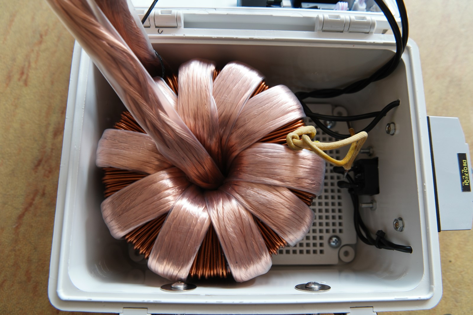 스폿성능을 끌어올리기 위하여 제작시 용접 전류량에 집중하여, 2차 권선에 유도된 전류가 허용전류에 따른 제한으로 권선 자체에서 열로 손실되지 않도록 충분히 두껍게 하고 그렇게 유도된
