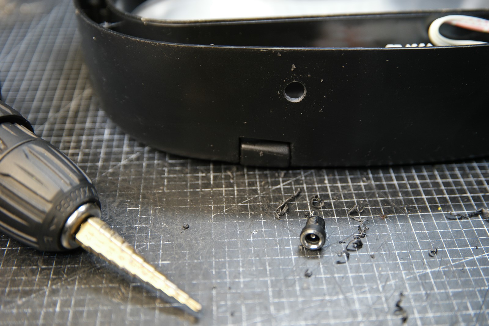 충전용 DC잭을 달아주는 작업이다. DC잭은 네이버 쇼핑에서 검색하면 개당 250원 이고 알리에서 구입하면 더 싼 가격에 구입도 가능하다. 중앙이 플러스 뒷면은 짧은 다리가 플러스다.