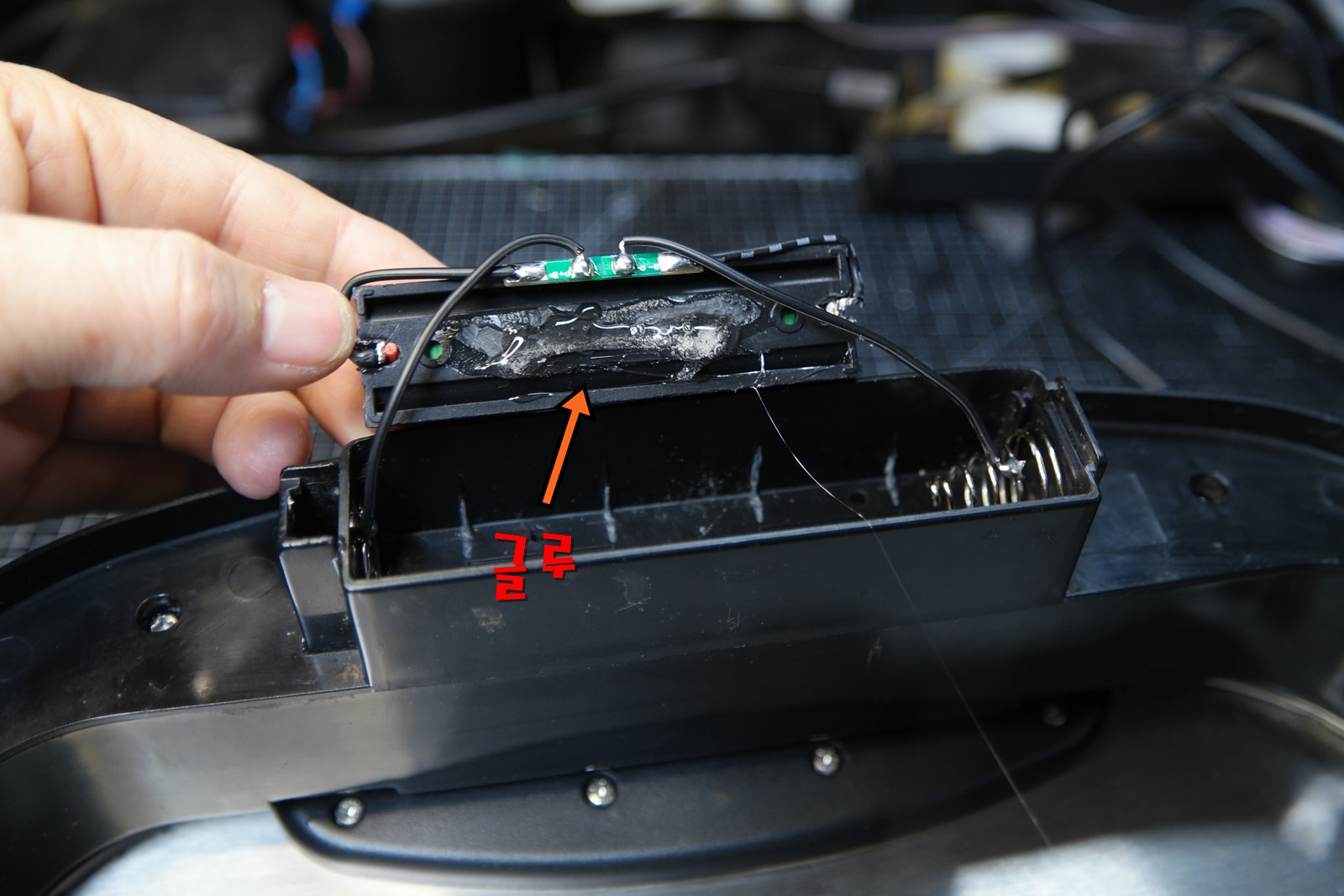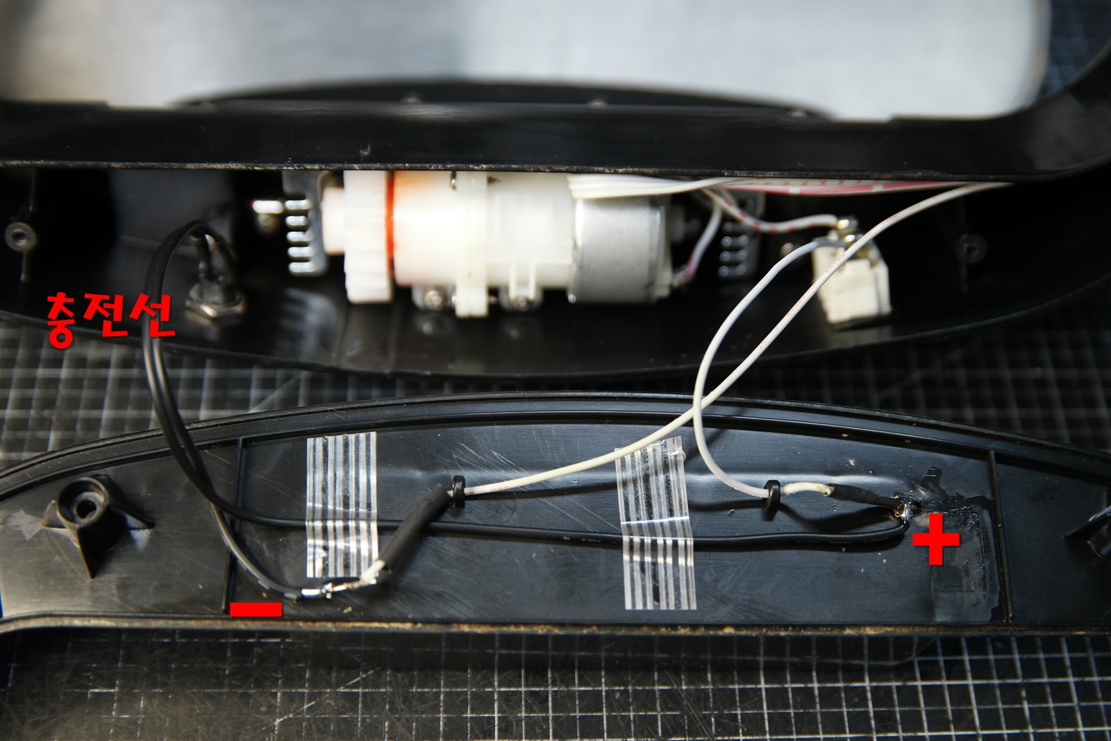 글루건으로 낫셀홀더를 고정하고 배터리를 연결해주었다.