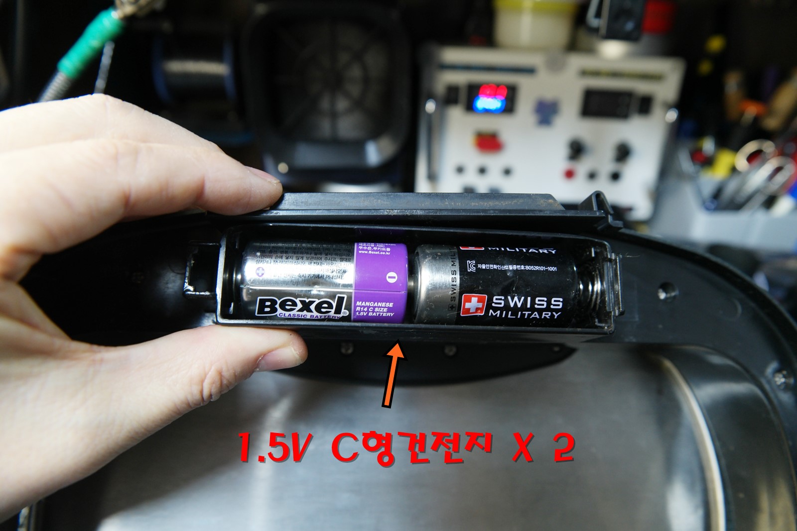 C형 건전지가 2개 들어가는 구조인대 최대 3V다. 리튬이온 18650의 경우 100% 충전시 4.2V인데 1.2V가 더 높다.