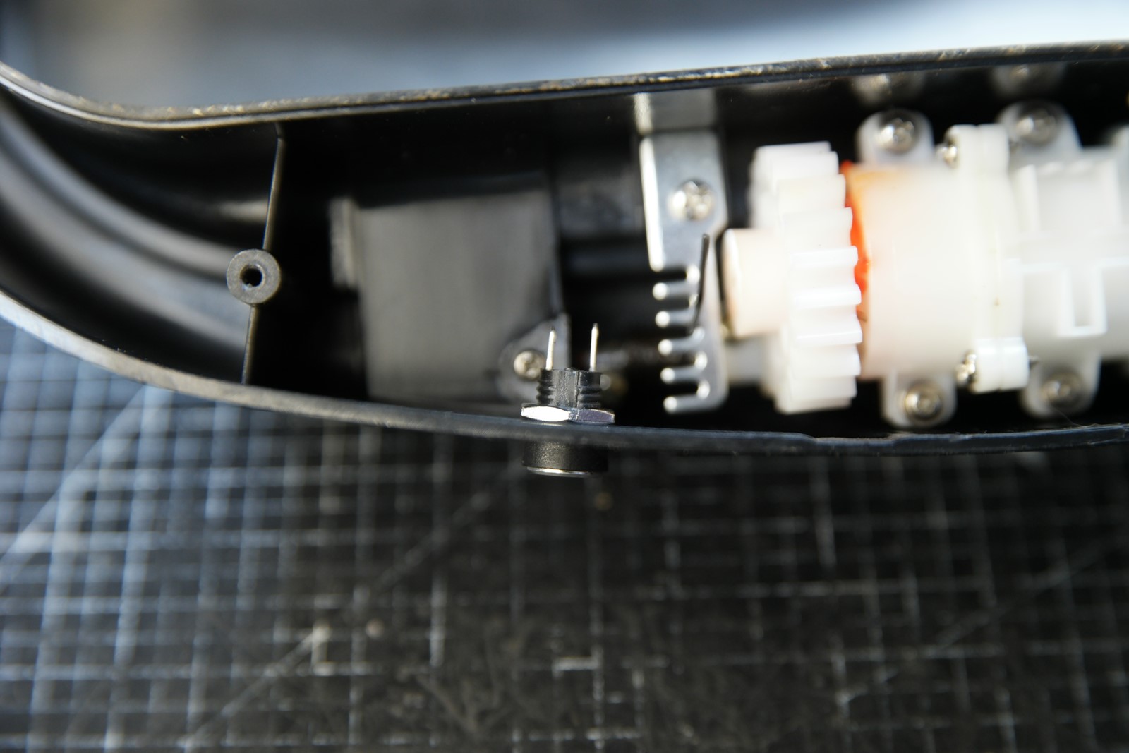 배터리 전원이 스위치를 거쳐 센서로 가고 센서에서 모터로 전원이 나오는 구조다. 모터는 1.2V가 더 높으면 토크가 높아지겠지만 크게 문제되지는 않을듯 싶다. 문제는 센서쪽인데 3V가 넘어가면 소손되는 소자가 있는지 체크를 해보아야 겠지만, 망가지는 셈치고 파서로 4.2V를 연결해보니 잘 동작했다.