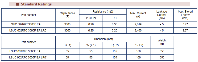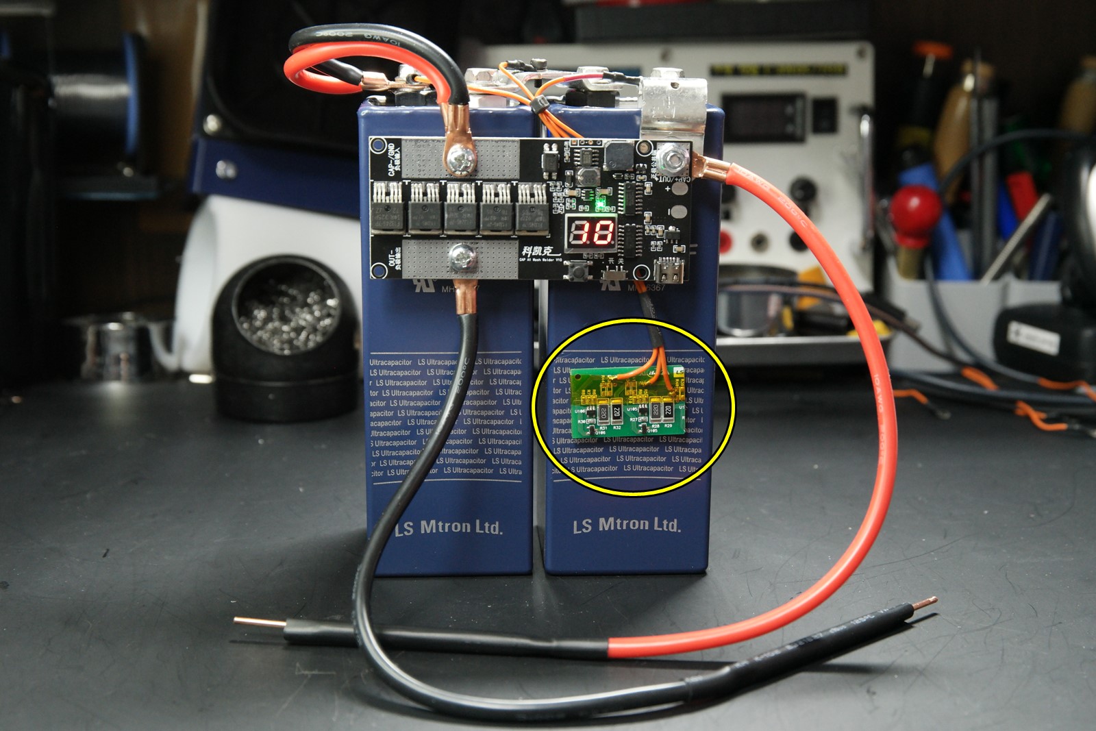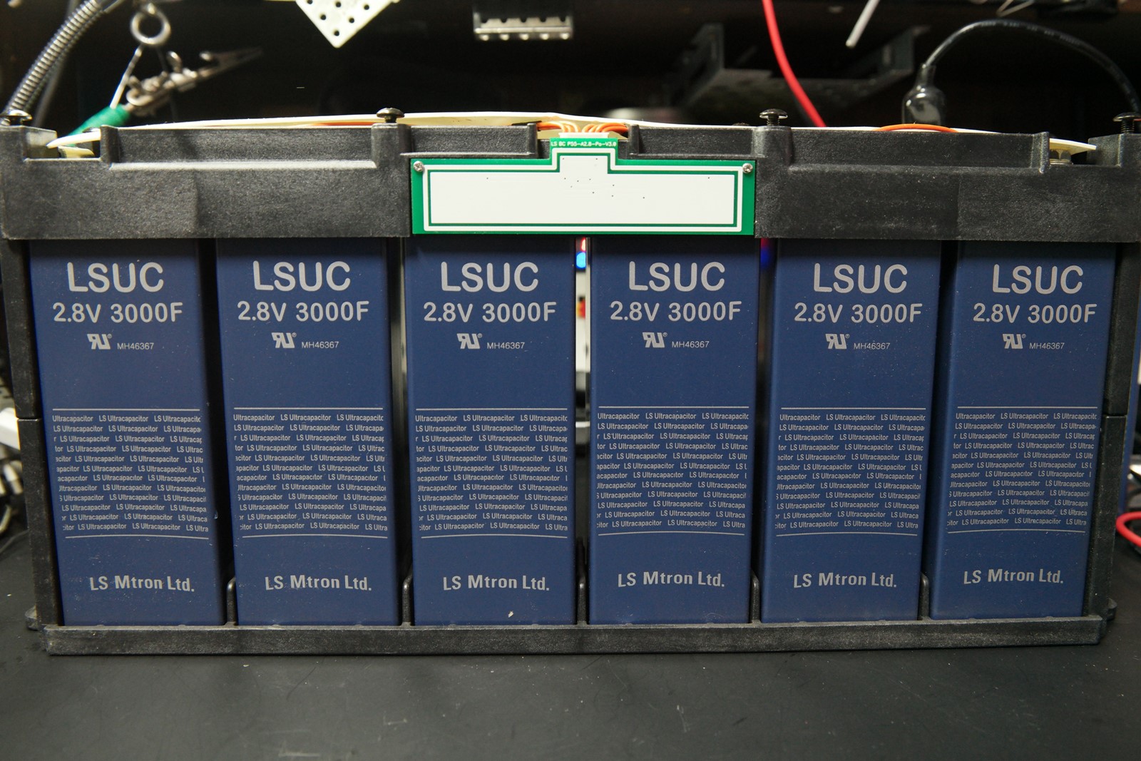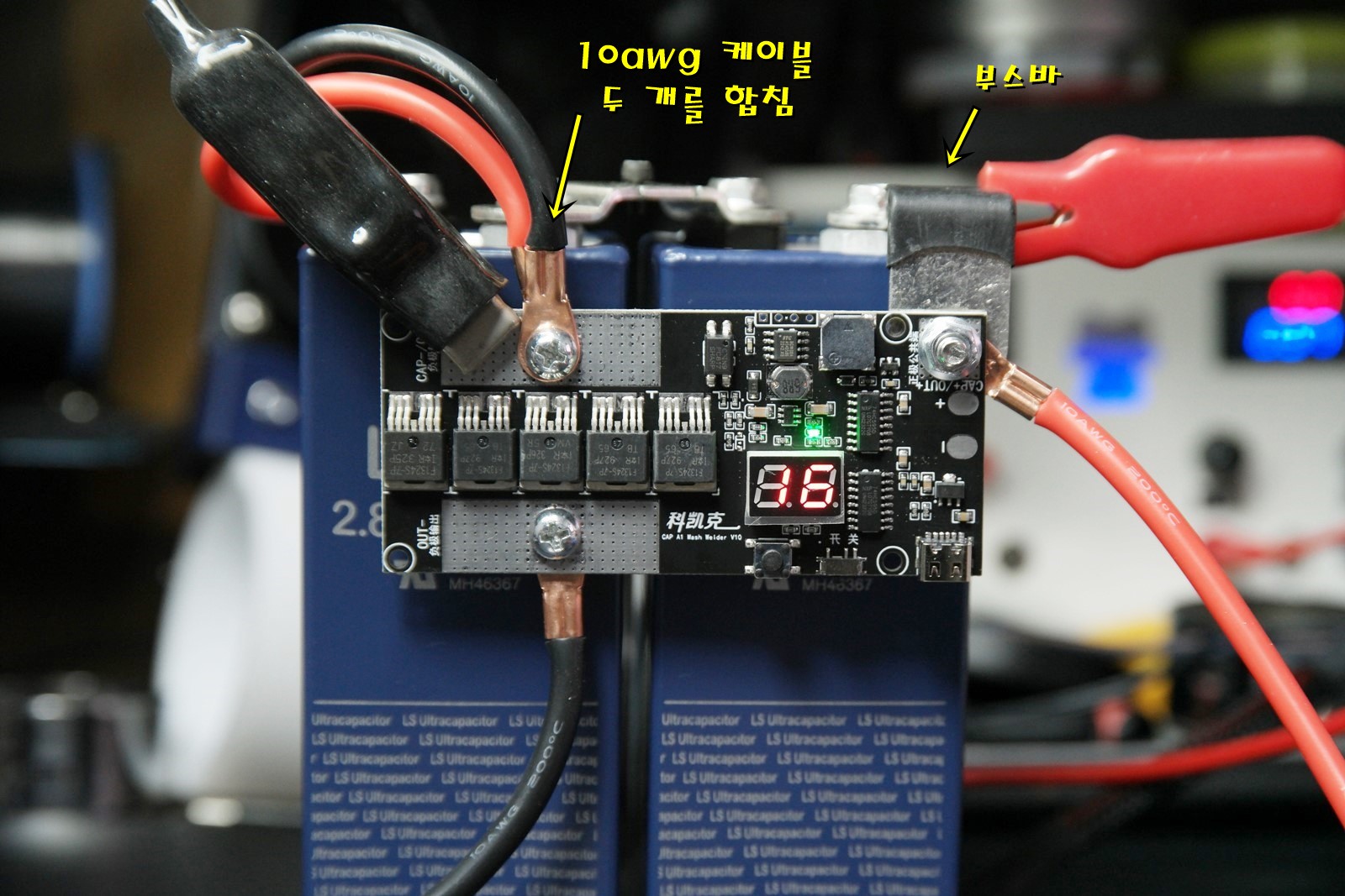 참고로 커패시터 3000F 2개를 직렬로 구성하면 전압은 두 배가 되고 용량은 1500F로 절반으로 줄어듭니다.