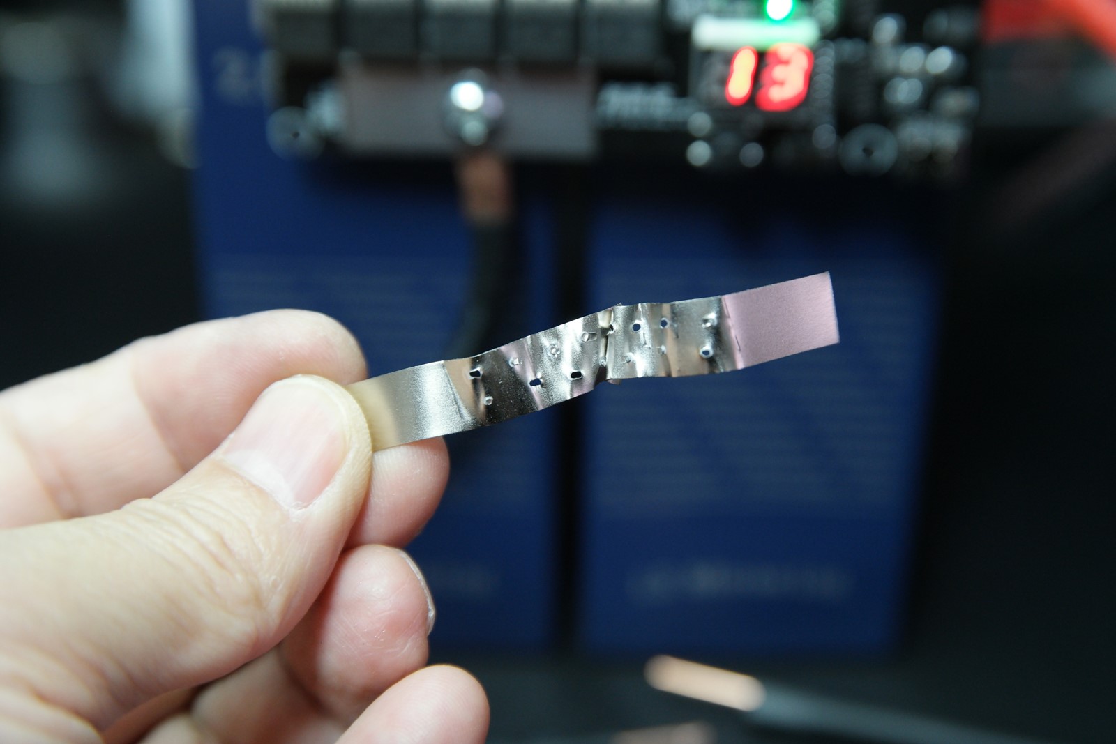 커패시터 전압 4.7V에서 최대 강도인 20에서 도금니켈 0.2t가 열화가 발생하면서 붙지 않았습니다. 아마 커패시터의 전압때문인듯 하지만 회로로 들어가는 케이블이 실리콘 자체가 10awg로 얇아 보강을 함께 진행했습니다.