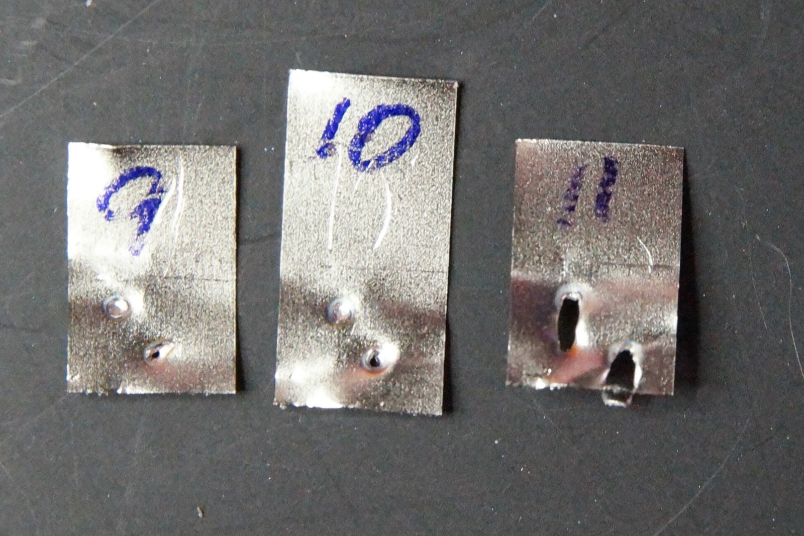 전압도 높이고 케이블도 보강한 상태로 최대강도에서도 안됐던 스폿이 13에서 구멍이 나며 잘 됩니다. 다만 열화가 많이 보여 밸런스 보드를 붙여주고 완성한 다음에 좀 더 세부적인 테스트가 필요해 보였습니다.