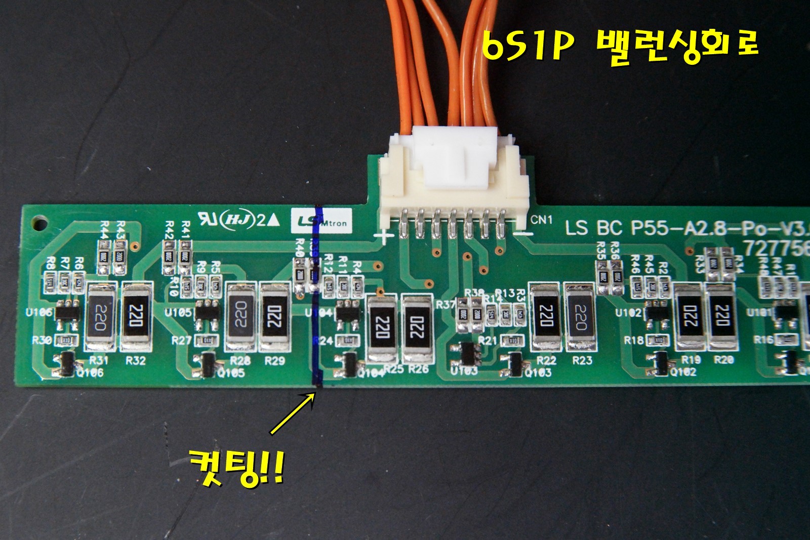 밸런스 케이블을 연결할 위치에 커터칼로 긁어서 동박이 드러나게 해줍니다.