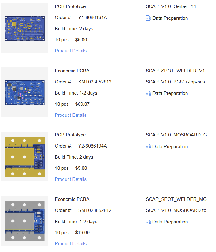 부품들 선택해서 JCLPCB에 주문했습니다.