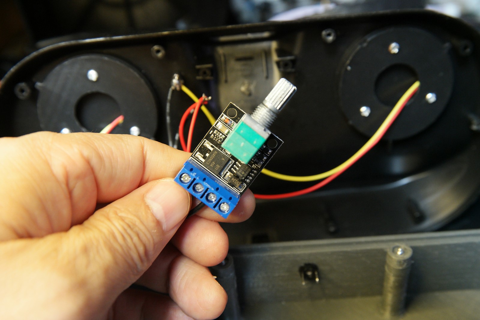 스위치를 떼어내고 PWM 속도조절 모듈을 사용합니다.