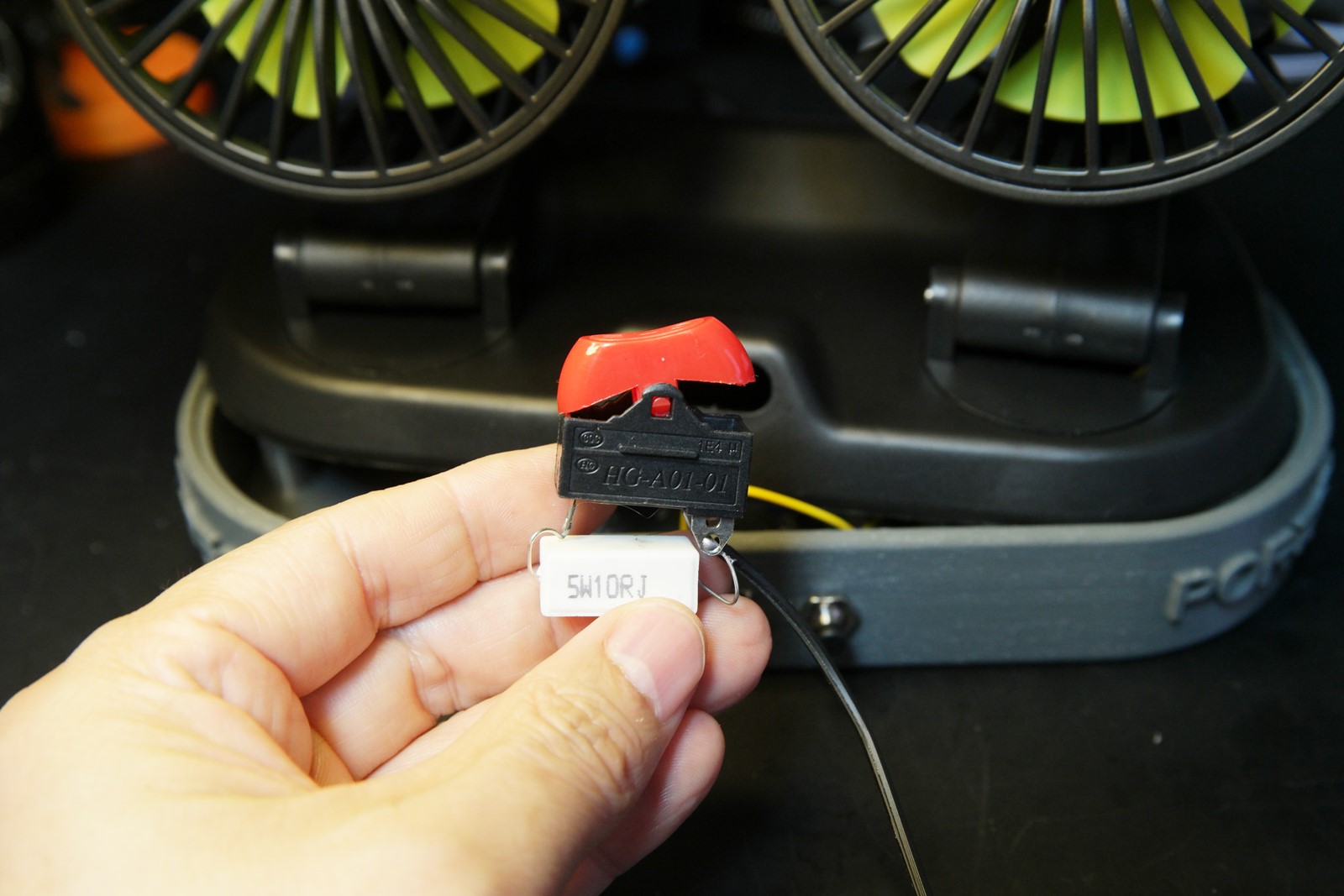 시거잭에서 들어온 케이블은 스위치 하나만 통과해 두 개의 모터로 이어집니다.