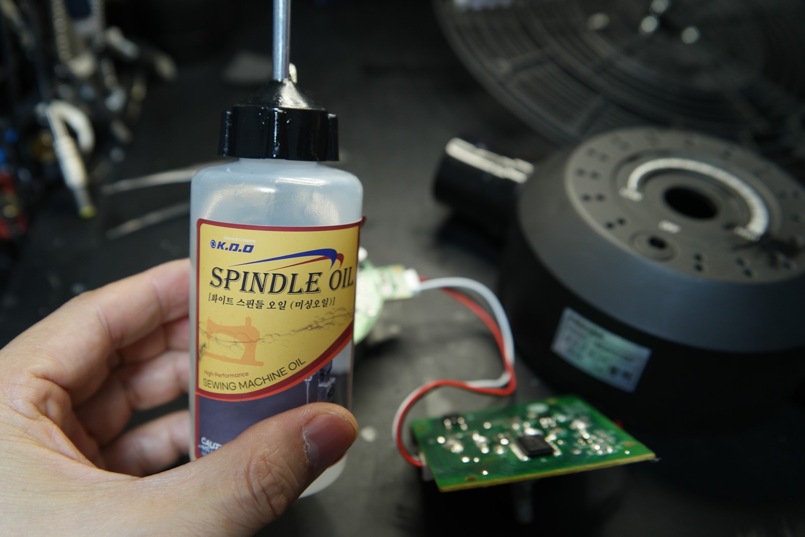 스핀들 (미싱) 오일을 준비해서... 베어링 부분에 몇 방을 떨궈주고 조립합니다.