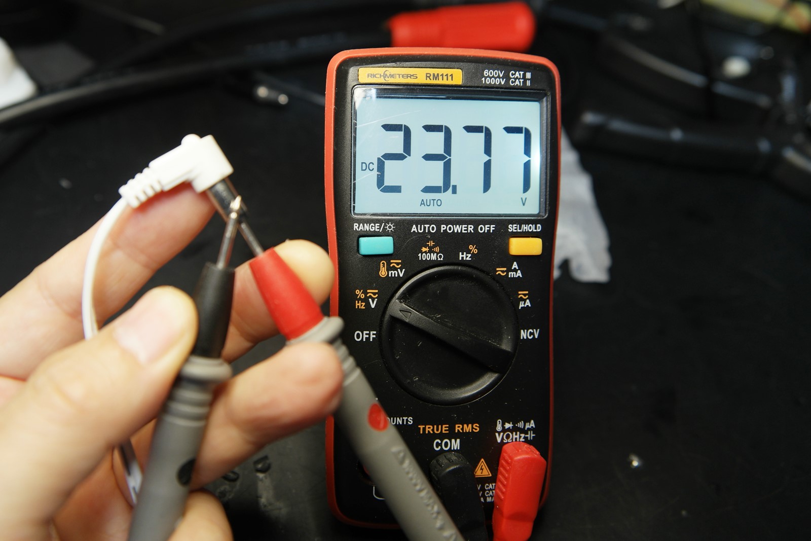 일단 전압을 제대로 측정이 됩니다. 부하가 걸렸을 경우 전압 드롭현상이 있을 수 있으니 파워서플라이를 연결해봅니다.