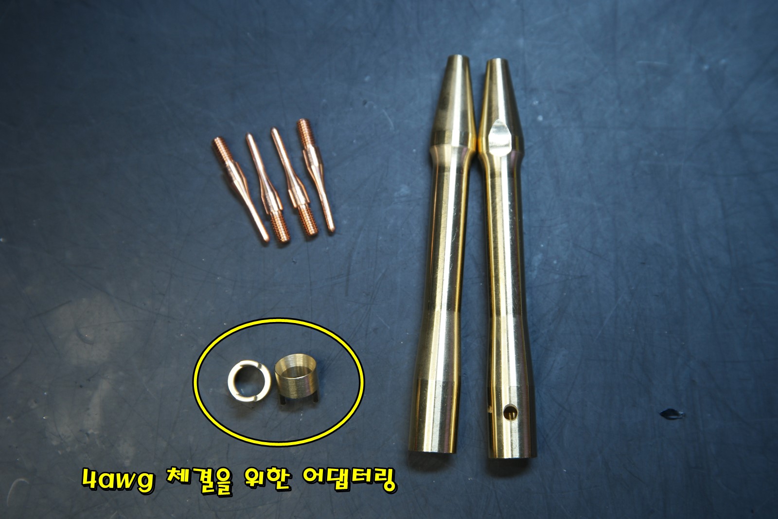 외형은 같지만 2awg 체결용 핸들과, 4awg체결용 핸들 두 가지로 모델링했고, 전선 연결부 내부 지름이 조금 차이가 납니다. 두 모델 사이 유격차이가 크지 않아 2awg용 핸들에 4awg를 사용해도 크게 거슬리지는 않습니다.