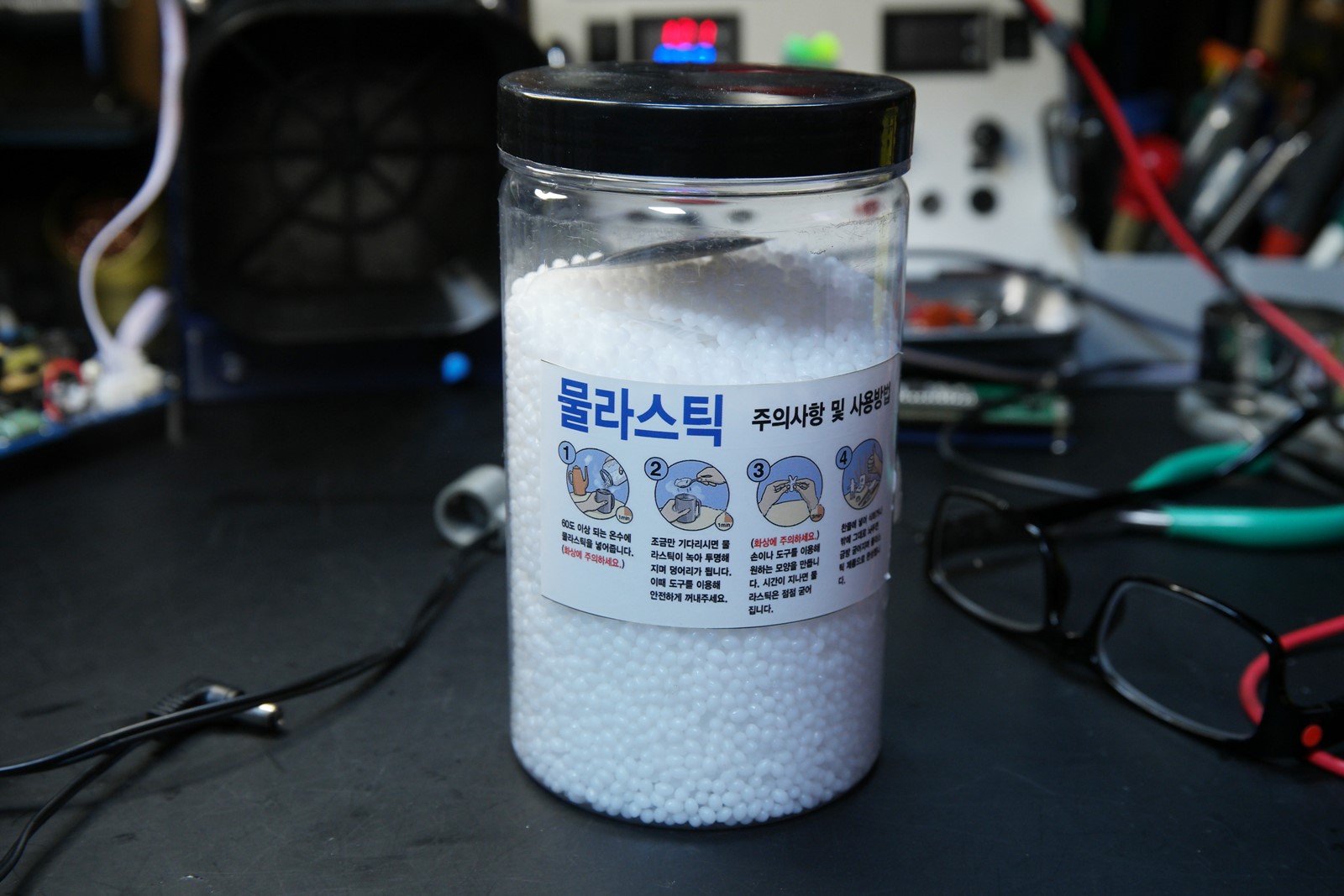 물라스틱을 뜨거운물에 녹여주고 손으로 반죽?을 해줍니다.