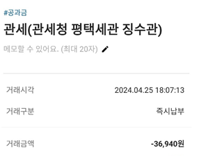 결과는 36,940원으로 원래 67,850원 보다 3만원 정도 빠진 가격으로 정정된 것을 확인하고 카카오뱅크 공과금 납부를 이용하여 완료했습니다. 조금 있다 통관시스템을 조회해보니 수입신고수리가 완료되었습니다.