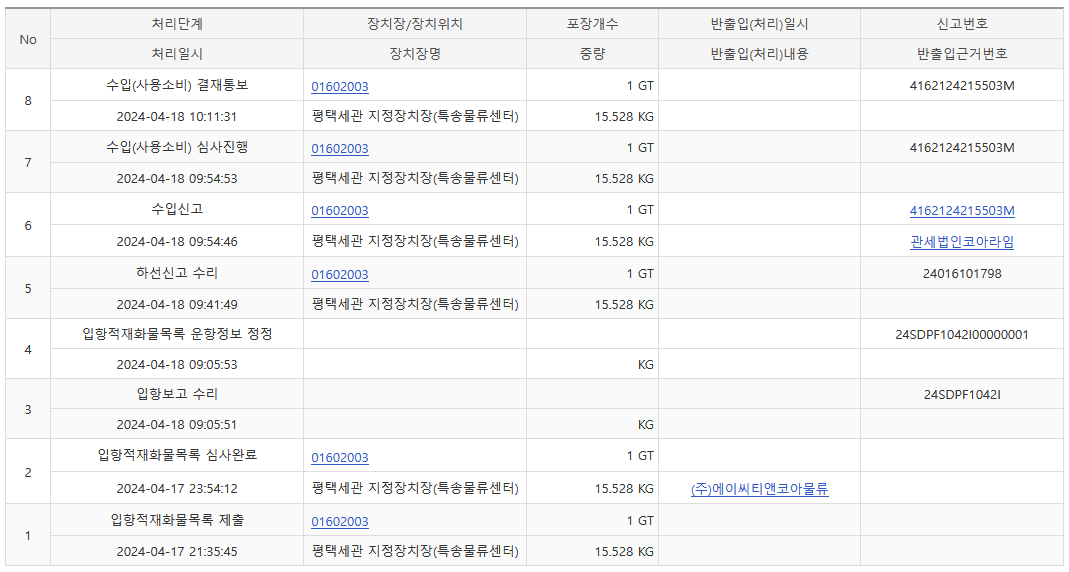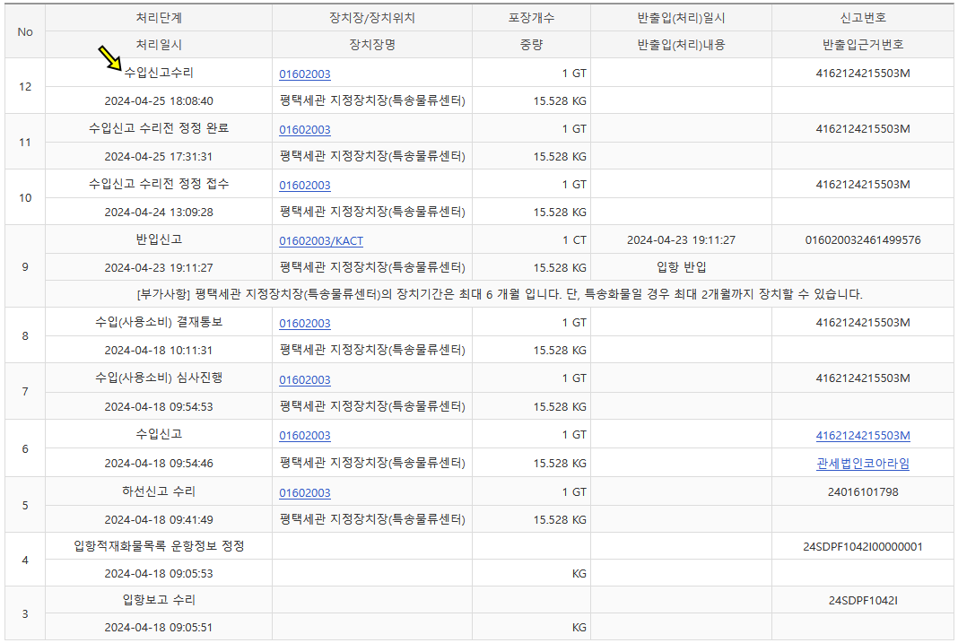 그리고 몇 시간후 통관시스템을 조회해보니 수입신고 수리전 정정 접수 단계로 넘어 간 것을 확인할 수 있었습니다. 이후 관세청의 승인을 기다립니다.