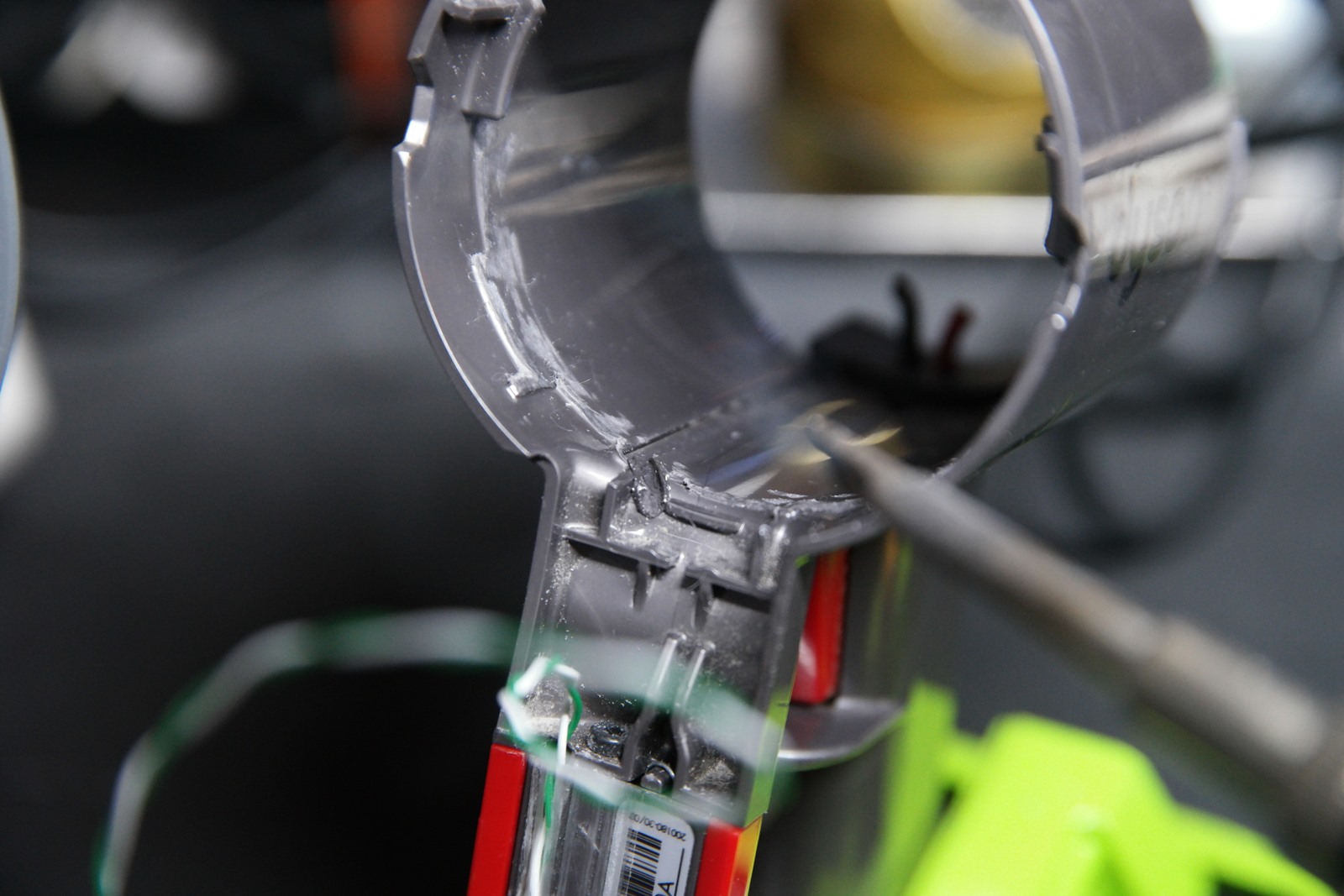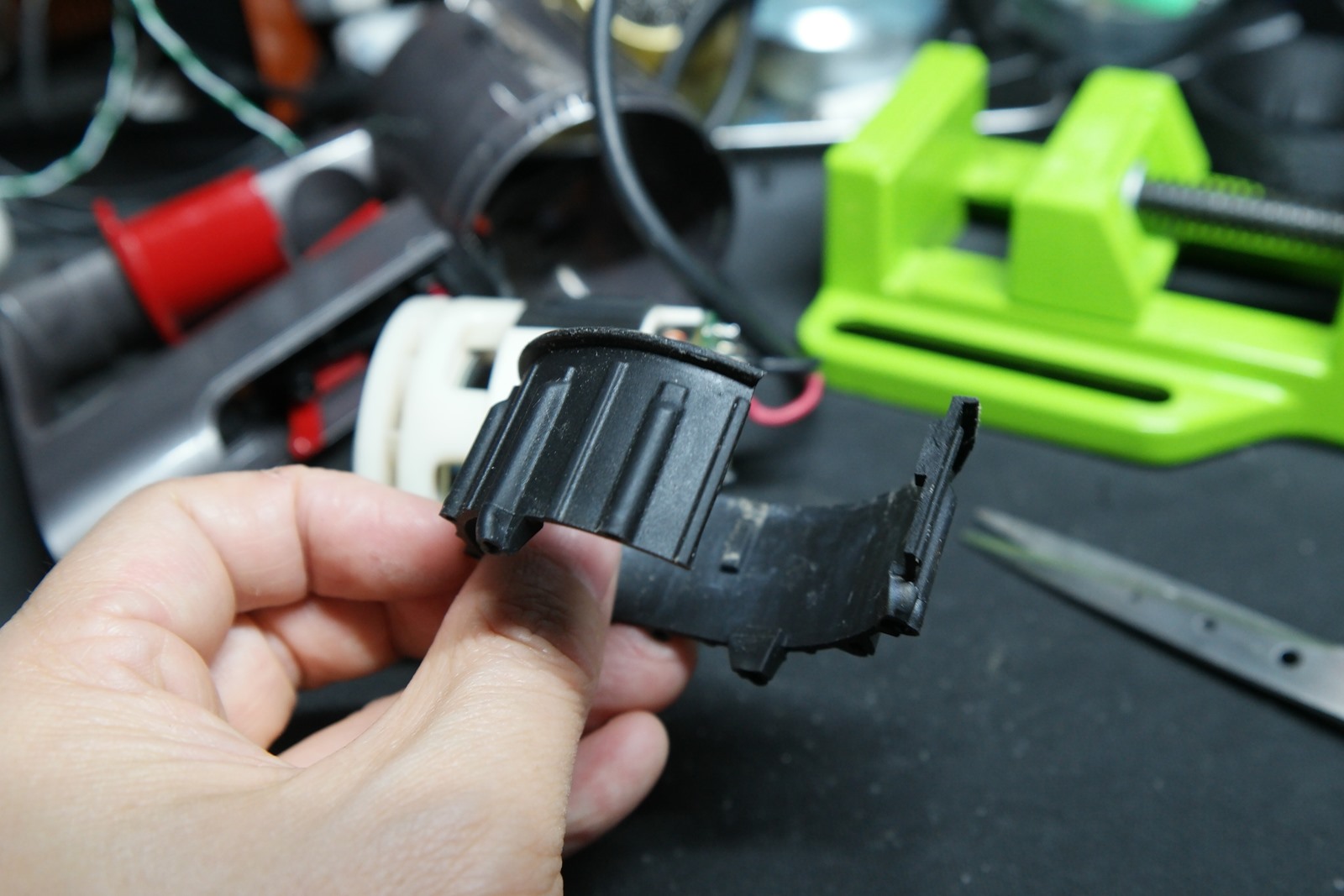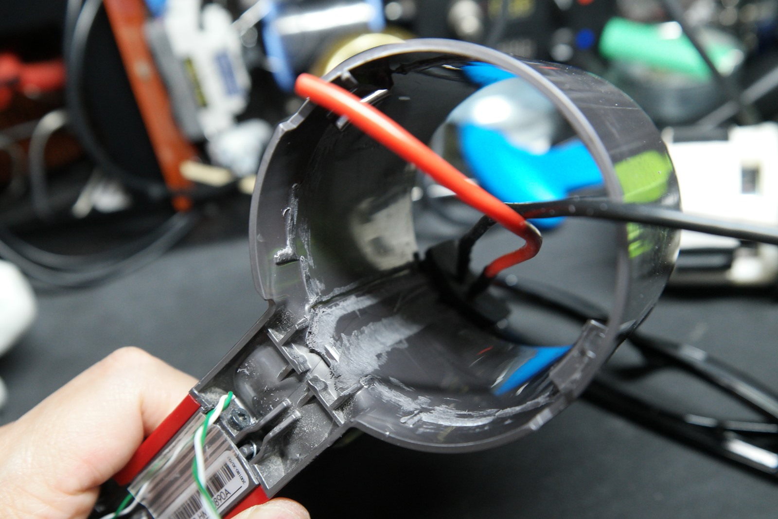 전원을 앞쪽으로 빼기 위해 연장하고 혹시 몰라 전선홈을 드레멜로 가공해주었습니다.