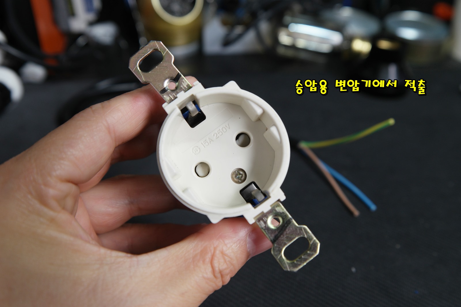 그리고 전구 소켓과 승압형 변압기에서 적출한 스위치와 1구 콘센트를 사용했습니다.
