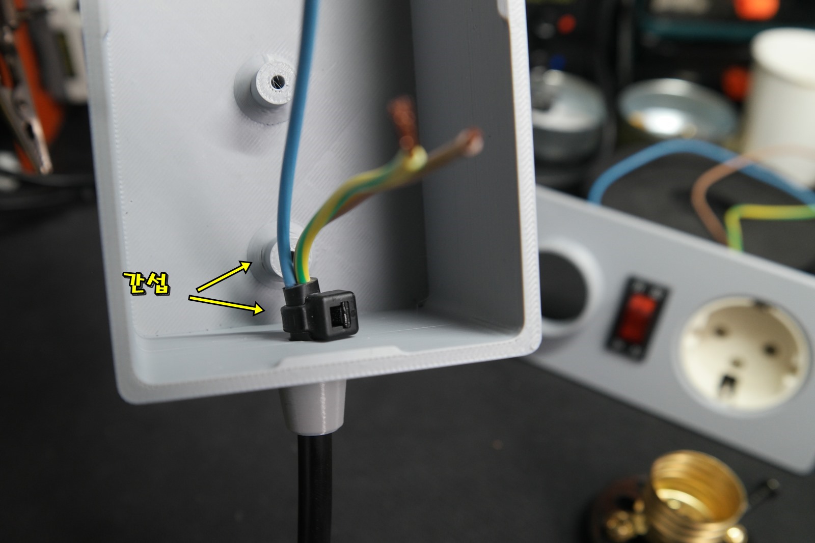 인입 전선에 케이블 타이로 마감을 했는데 전구 소켓 고정부분과 약간의 간섭이 생깁니다.