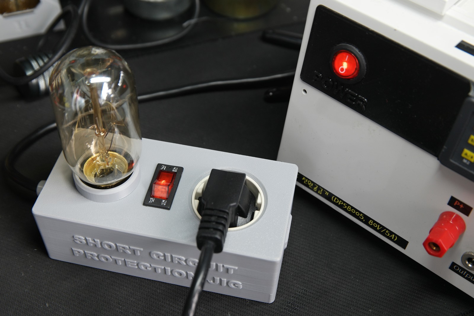 수리를 마치고 전원을 인가했을 때 내부 쇼트 상태라면 '뻥~'하고 터지면서 부품들이 파손되는 것을 방지하기 위한 목적이지만, 합선에 의한 뻥~은 심리적인 위축도 가녀오니 약간의 멘붕 방지용 지그(JIG)이기도 합니다. ^^;;