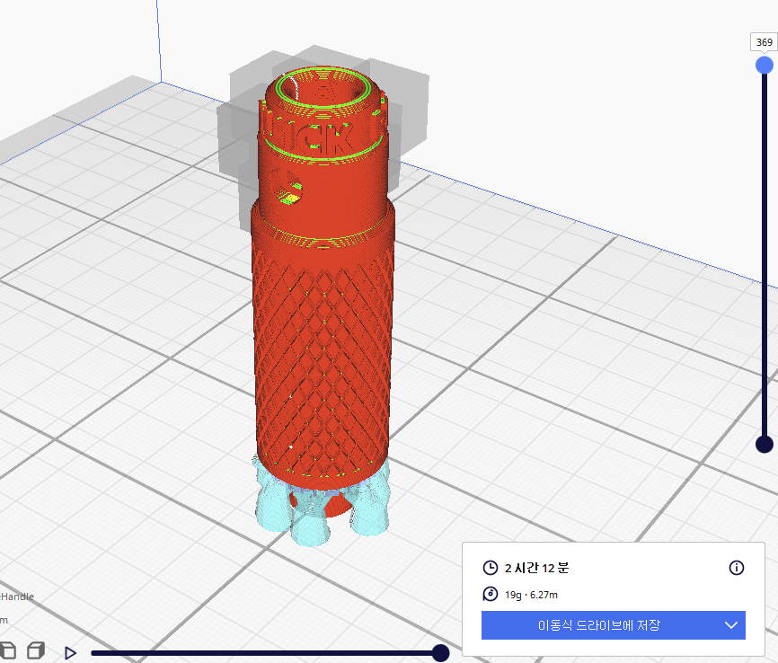 내부채움을 기본(20%)으로 할 경우 핸들 끝부분 캡을 꽂고 분리하면서 부러질 수 있습니다.