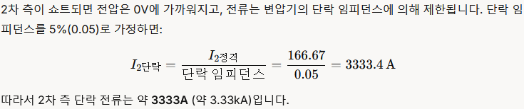 2차측은 정격 166.67A, 단락시는 3333.4A