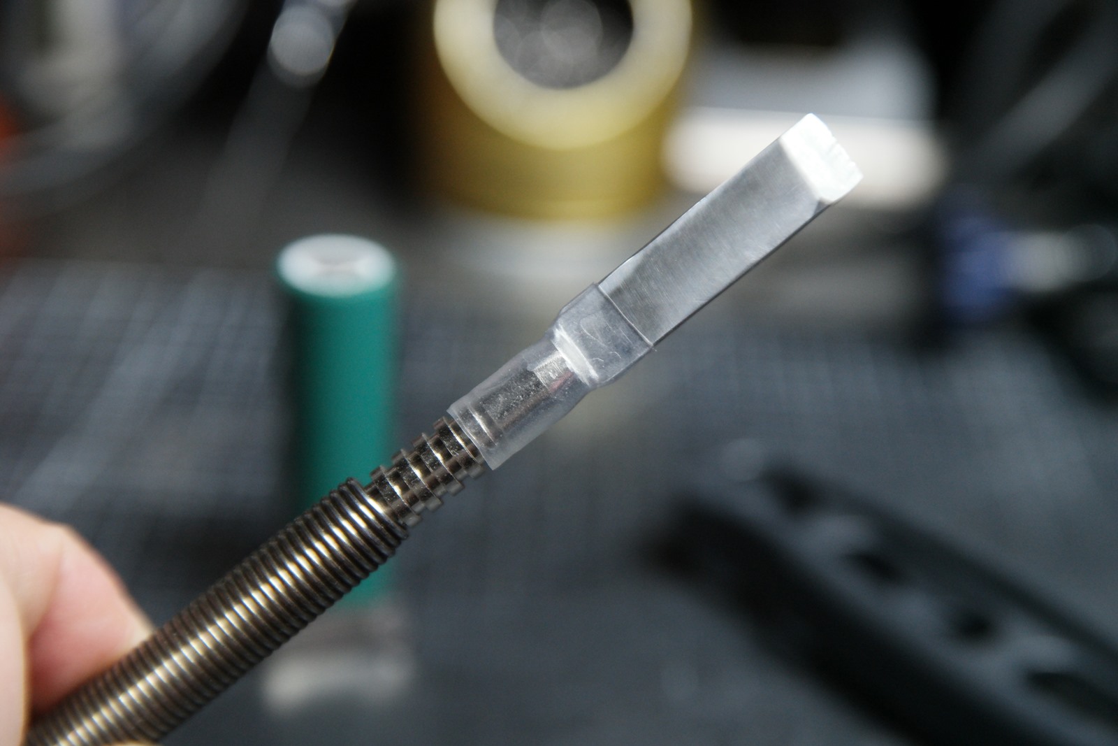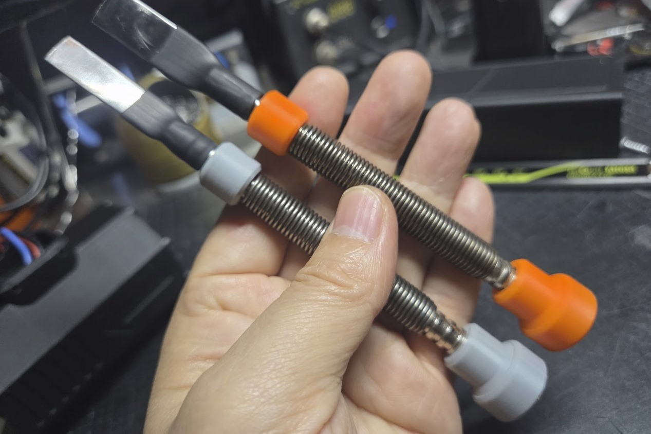 이게 작업하면 할 수록 블레이드와 센터펀치가 강하게 고정되는 느낌이라 여기서 끝낼까 스프링이라도 걸까 고민하다 결국 적당한 수축튜브만 씌워주기로 했습니다.