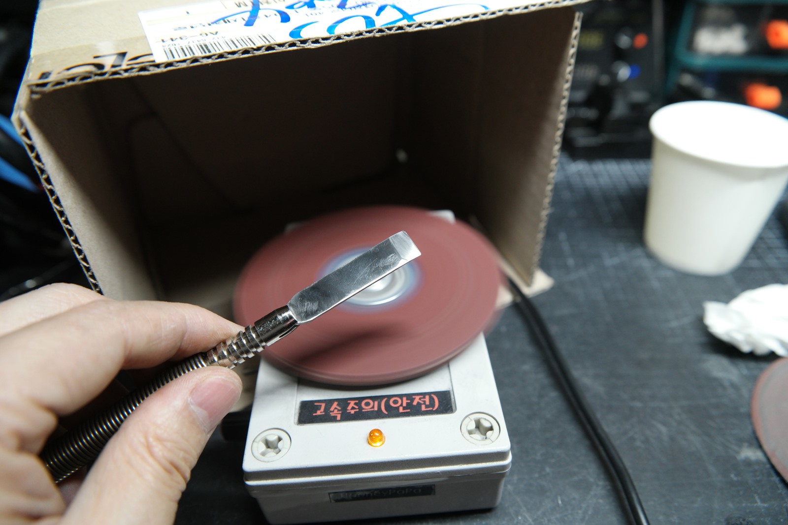 컴퓨터 하드디스크로 미니 테이블 그라인더 DIY 최종버전 - 찍찍이, 4인치 샌딩페이퍼와 연마디스