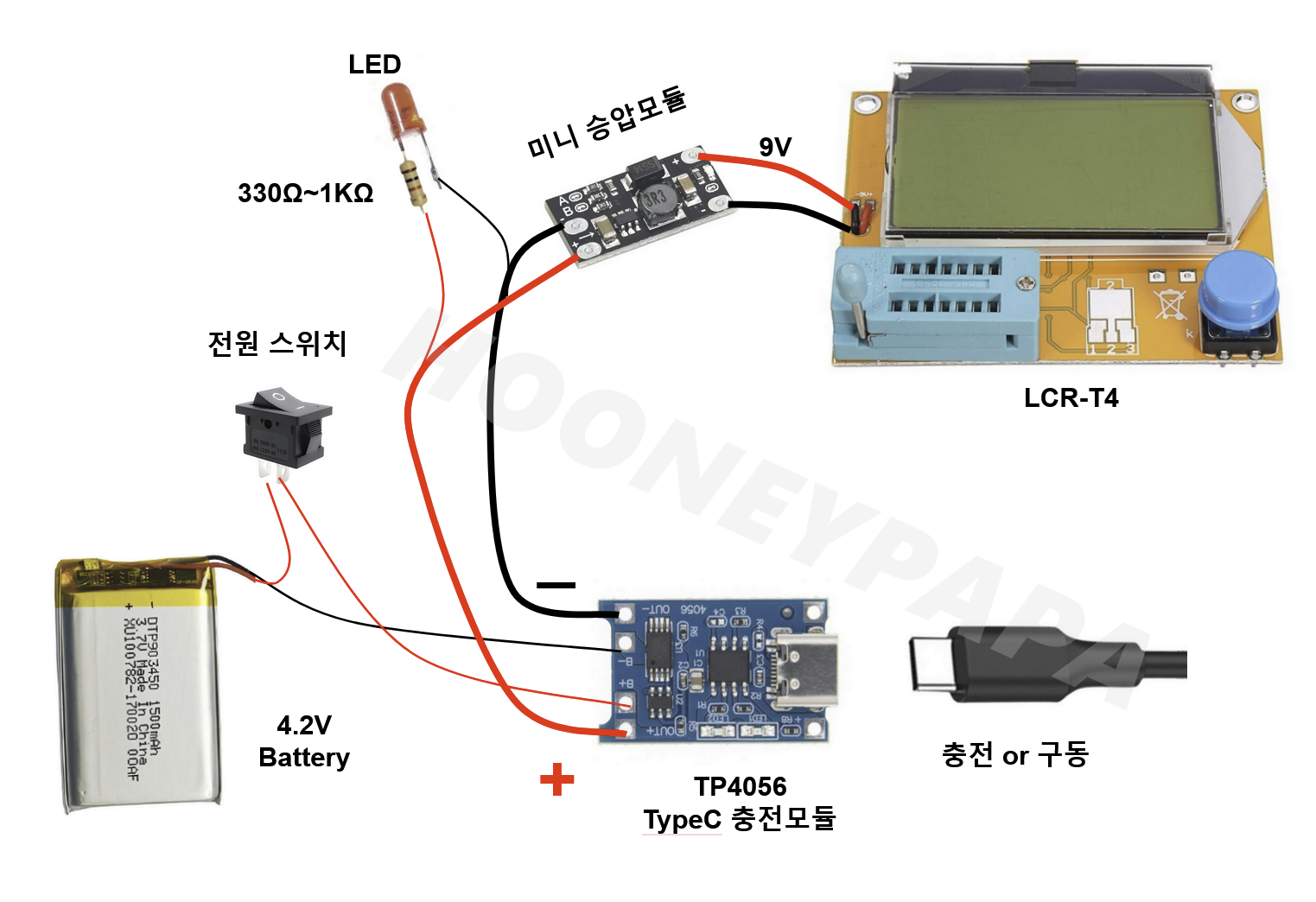 굳이 충전용이 아니라 9V 건전지를 사용한다면 훨씬 더 간단해질듯 합니다만,,, 배터리 DIY 짬빱이 있다보니 집에 굴러다니는 18650이나 폴리머 배터리를 사용하기로 합니다.