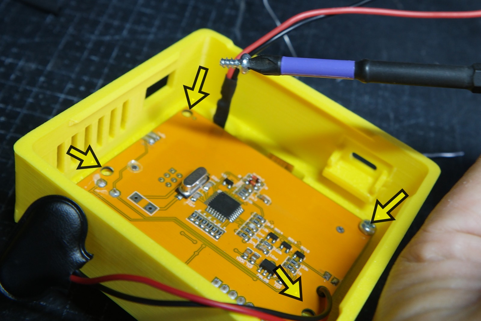 길이 M3/10mm 이하의 나사나 볼트를 구해서 화살표 4군데를 고정해줍니다.